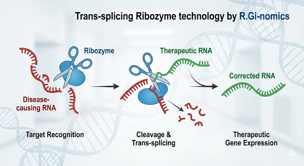 핵심은 바로 '트랜스 스플라이싱 리보자임(Trans-splicing Ribozyme)' 기술입니다.